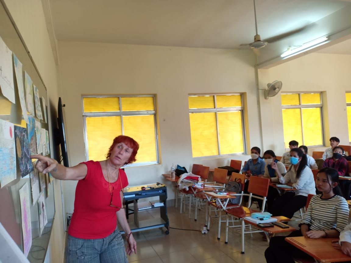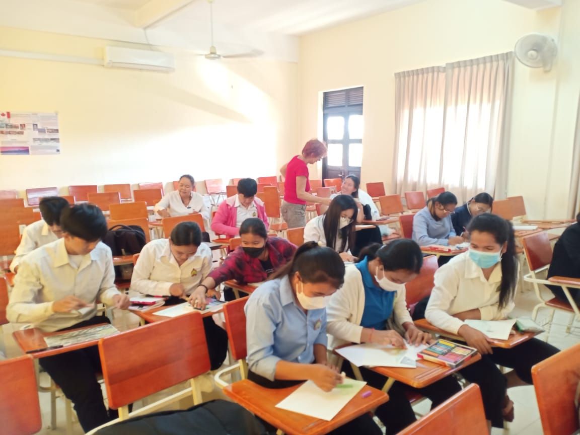 Nadine Brêthes se consacrait essentiellement à former des étudiants à l’étranger. Elle a commencé en décembre 2022 avec les 7 premiers psychologues du Cambodge plus des étudiants en psychologie.