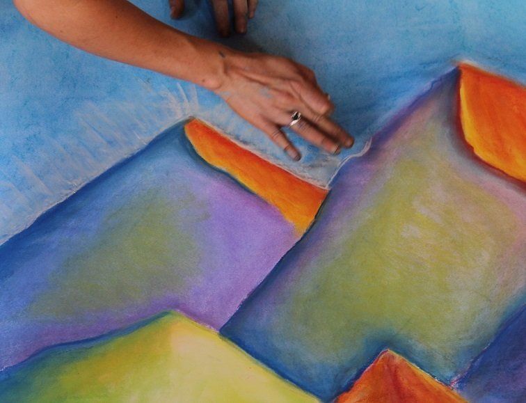 Tekenen met droge pastelkleuren Het is het favoriete medium van evolutieve kunsttherapie® Droge pastelkleuren, gemakkelijk te gebruiken, zijn bedoeld voor alle doelgroepen, van kinderen tot ouderen. Zonder drogen of opgelegde techniek, in alle contexten van workshops of sessies, gebruikt op een ietwat dik papier, biedt deze praktijk gemak in de symbolische kunst-therapeutische handelingen die we voorstellen in het evolutieproces.