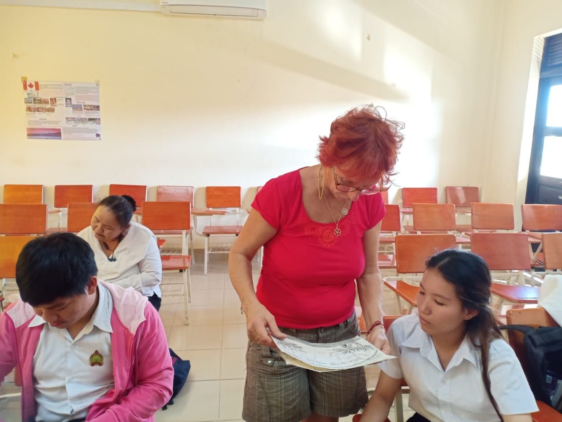 Nadine Brêthes se consacrait essentiellement à former des étudiants à l’étranger. Elle a commencé en décembre 2022 avec les 7 premiers psychologues du Cambodge plus des étudiants en psychologie.